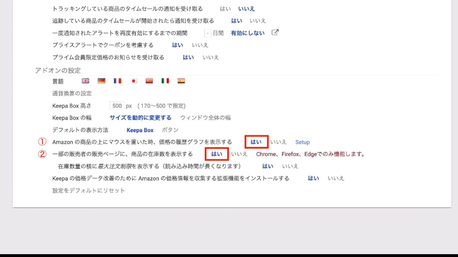 ①Amazonの商品の上にマウスを置いた時に価格の履歴グラフを表示する「はい」