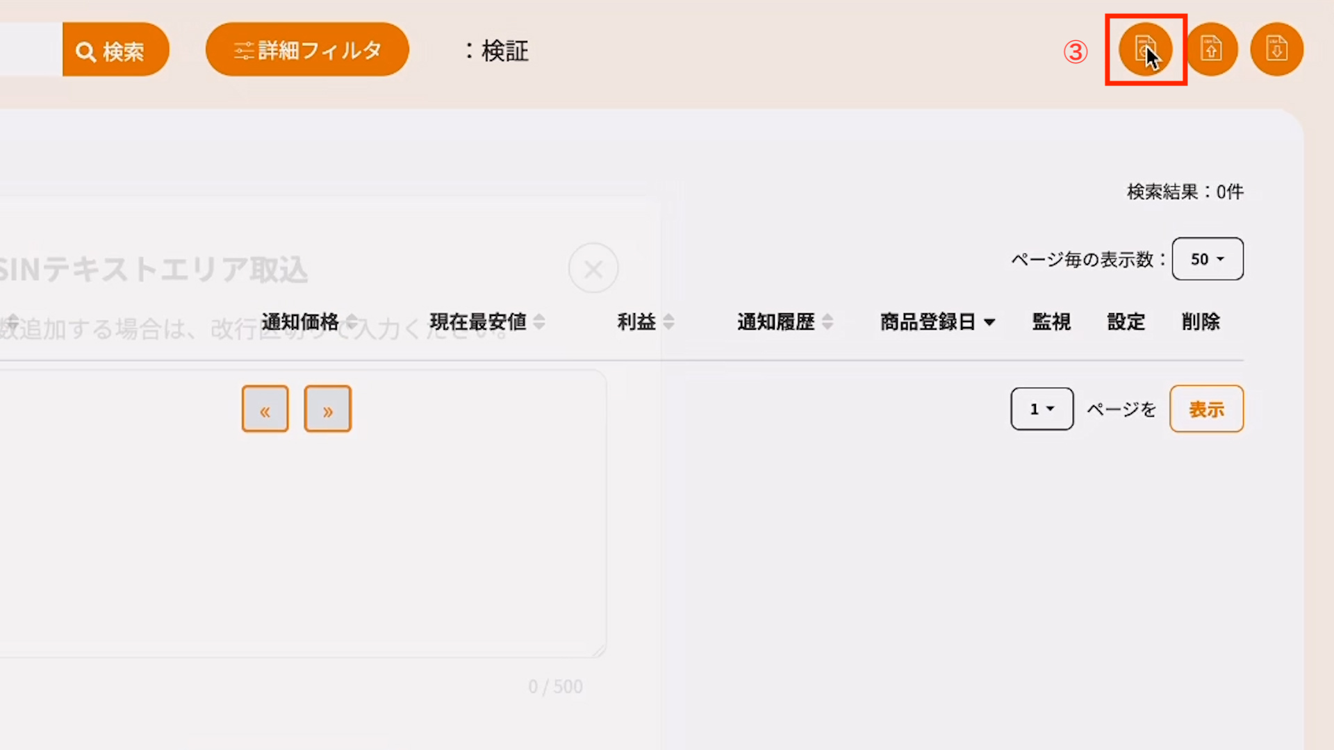 「詳細フィルター」では通知がきた商品の個数が多い順に並べ替えたり、全然通知が来ない商品をここでヒットさせて簡単に消去することもできます。