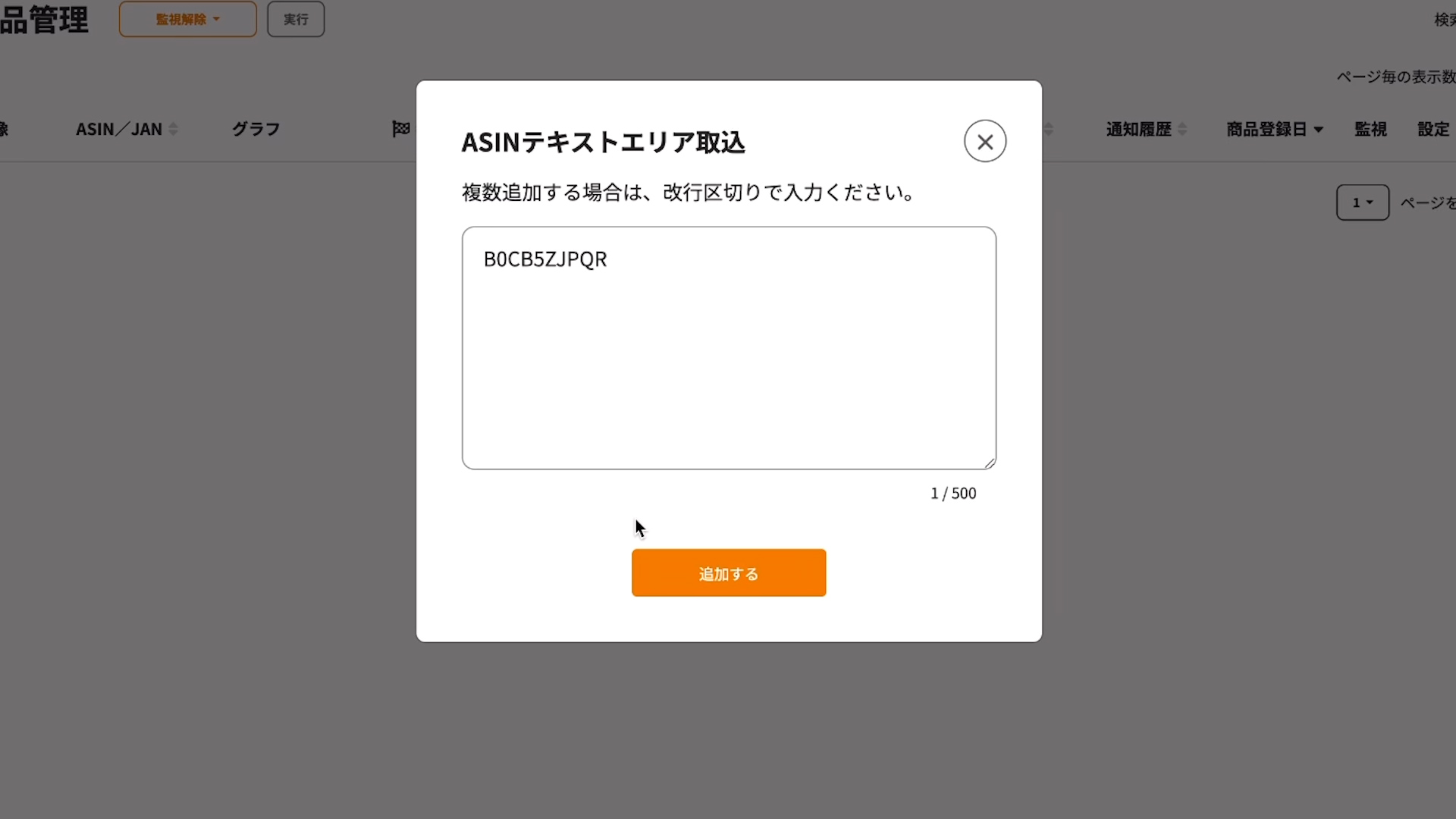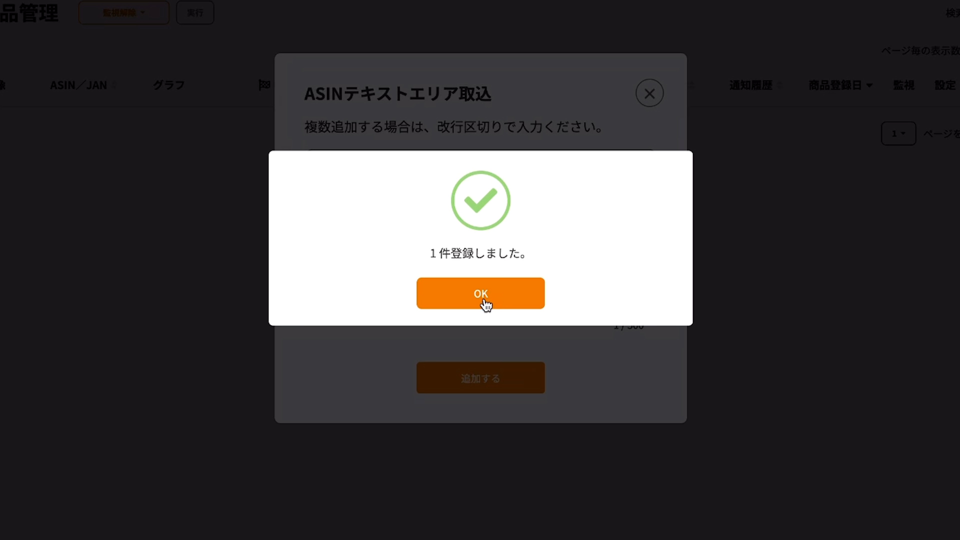 ④ASINを貼り付けて登録完了