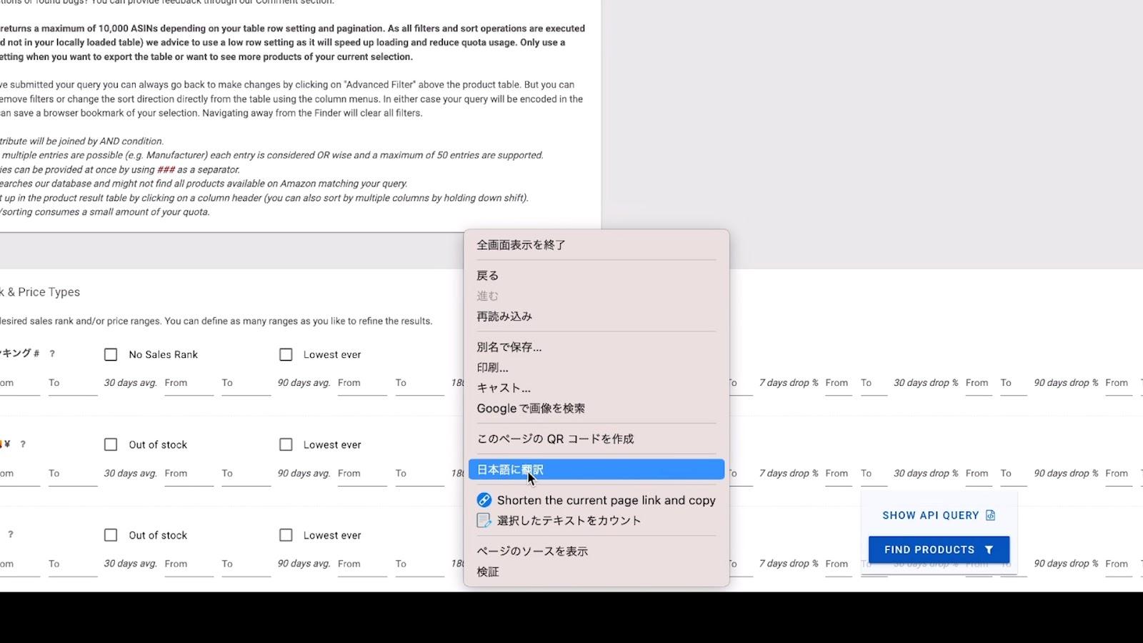 初期設定が完了したら「Product Finder」に戻って2重タップ(右クリック)で「日本語に翻訳」を選択