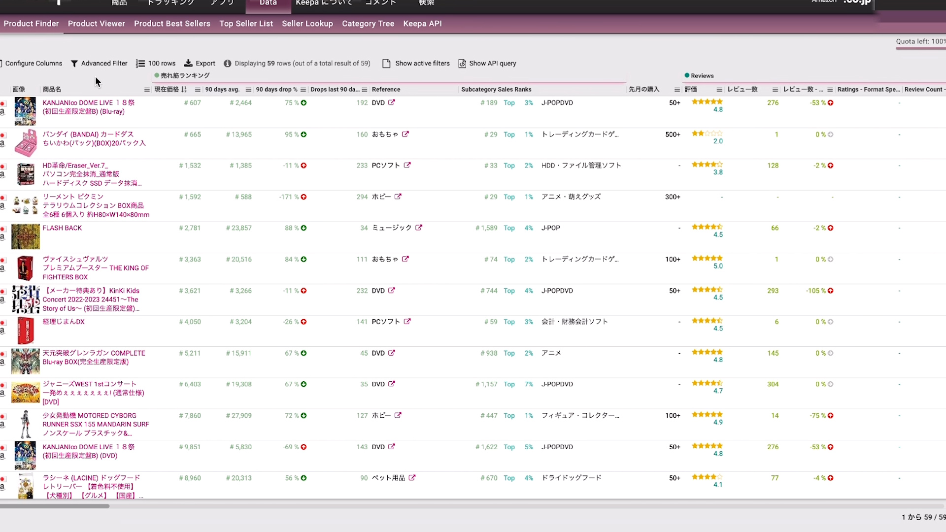 ↓こんな感じで商品が出てくるので、出てきた商品を更にリサーチしていきます。