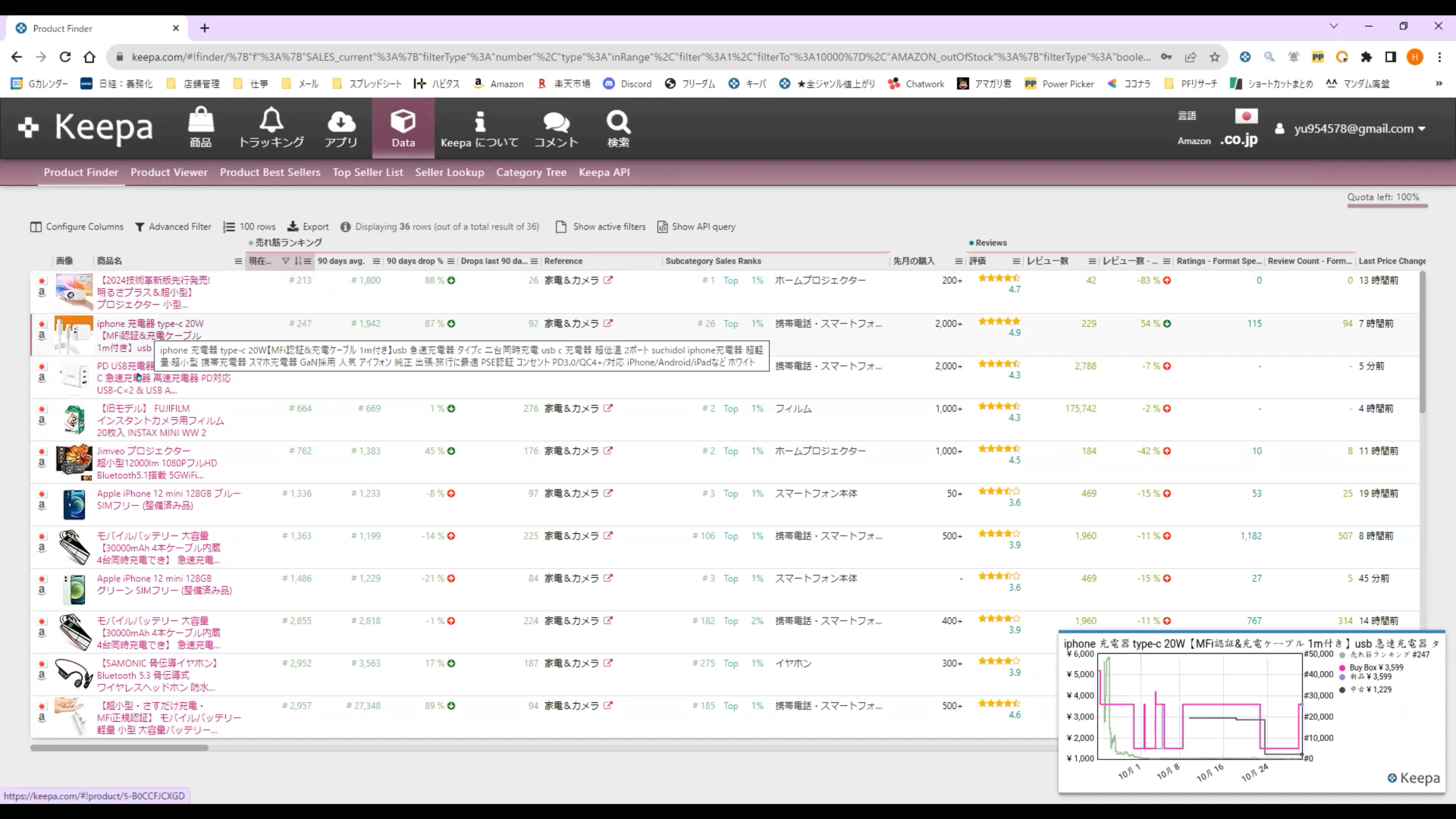 なのでこのリサーチは今日やったものと明日やるものでは出てくる商品が変わります。