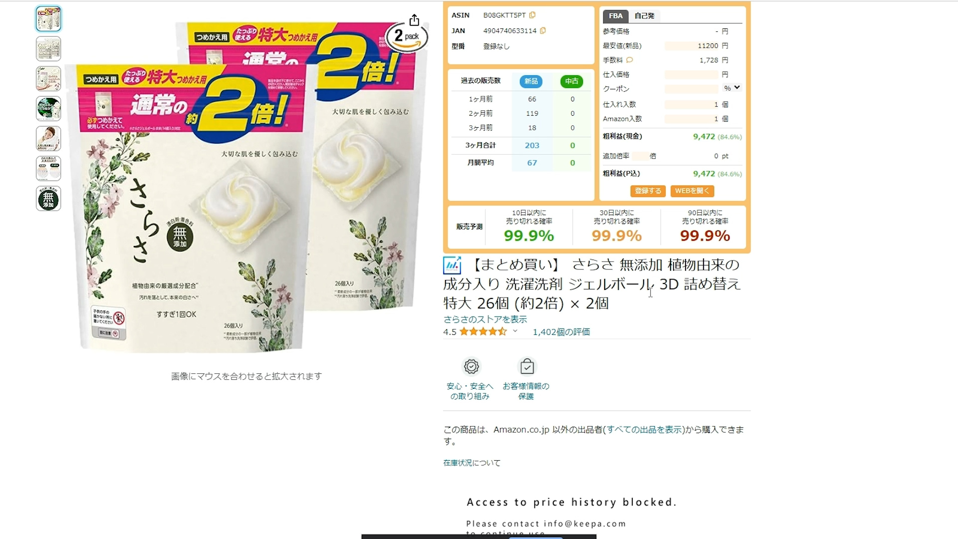 長くせどりをしている人なら結構知ってる商材かも知れませんが、廃盤の商品で大体「11,200円」ぐらい上がっています。
