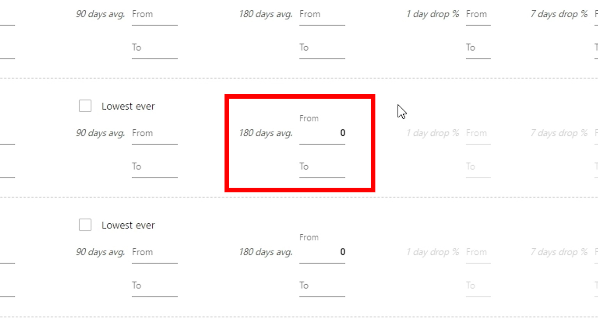 ③その上で「30 days avg.」(直近30日の平均)に「0」を入れる