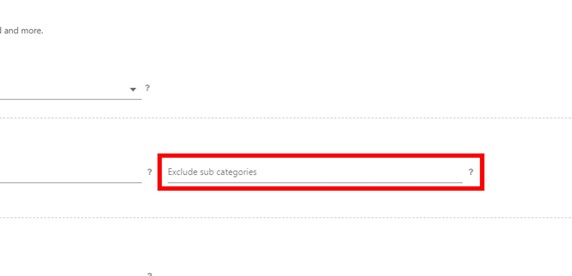 もしやるとしたら『Exclude sub categories』というところで、ここはこのカテゴリーを除外しますよという設定が出来ます。