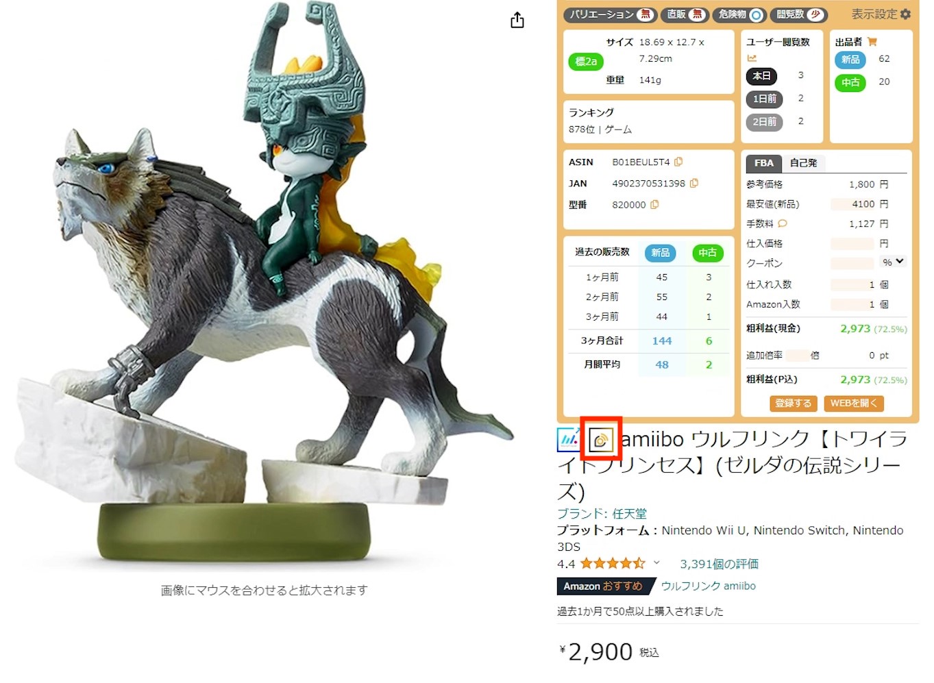 そうするとこで、単品の商品のページが出てくるので、リサーチとかグラフとかの見間違いとかがなくなって仕入れの精度も上がるのでお勧めです。