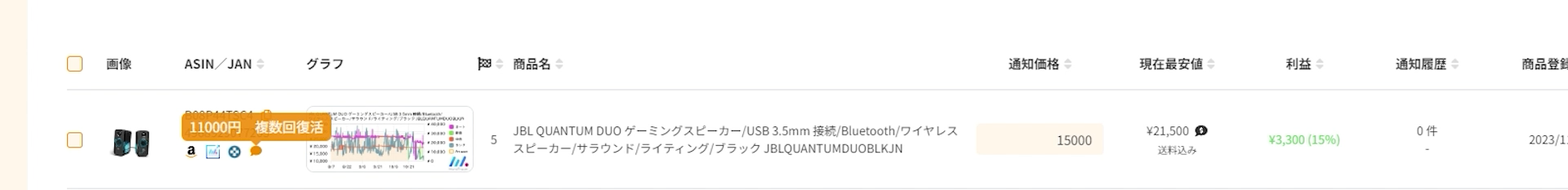 登録した商品を50秒に1回程商品の価格を監視してくれるのは、せどり業界では最速なので非常に強力なツールです。